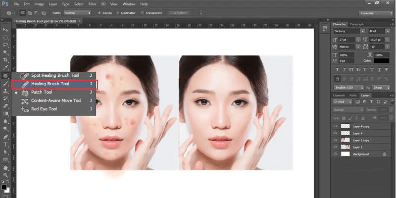 Cách xóa nếp nhăn trong Photoshop – Sử dụng Healing Brush Tool