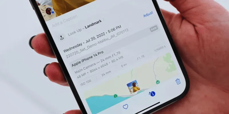 - Để xem thông tin này, bạn chỉ cần vuốt lên trên tấm ảnh trong ứng dụng Ảnh. iPhone sẽ hiển thị thông tin cơ bản như ngày, giờ và địa điểm chụp ảnh. Để xem đầy đủ thông tin EXIF, bạn có thể cần đến các ứng dụng chuyên dụng hỗ trợ đọc metadata như Exif Viewer hoặc Photo Investigator. Siêu dữ liệu EXIF thường được coi là đáng tin cậy hơn so với văn bản được thêm vào bằng công cụ Markup, vì nó được tạo ra tự động bởi thiết bị tại thời điểm chụp.