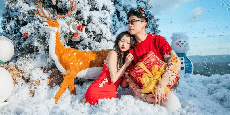 - Không gian chụp ảnh không chỉ là phông nền mà còn là một phần của câu chuyện. Concept chụp ảnh Noel thành công thường kết hợp hài hòa giữa yếu tố con người và khung cảnh xung quanh, nơi cả hai đều bổ sung cho nhau thay vì cạnh tranh sự chú ý.