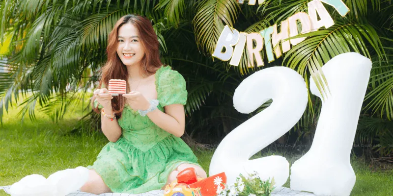 Picnic lãng mạn là concept chụp ảnh sinh nhật dễ thực hiện nhưng hiệu quả cao với đạo cụ đơn giản như chiếc thảm đẹp, giỏ mây, hoa tươi và bánh ngọt nhỏ. Kết hợp với trang phục váy hoa nhẹ nhàng và makeup trong trẻo sẽ tạo nên bộ ảnh đầy nắng và gió. Địa điểm lý tưởng có thể là công viên trung tâm, bãi cỏ thoáng đãng hay một góc vườn yên tĩnh.