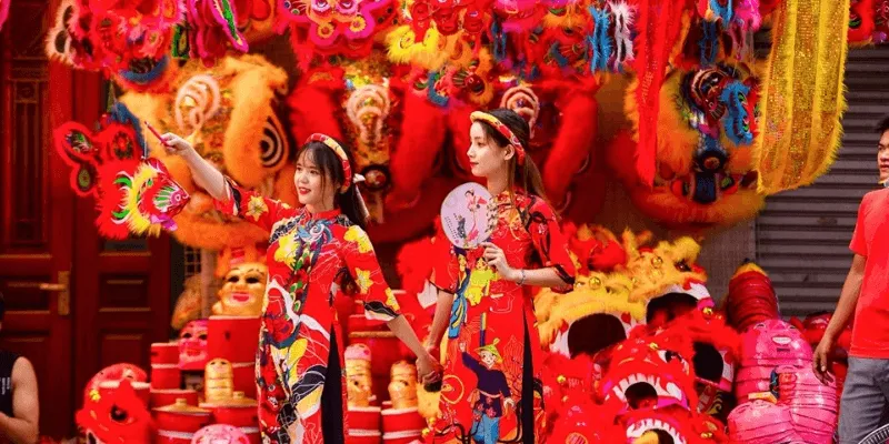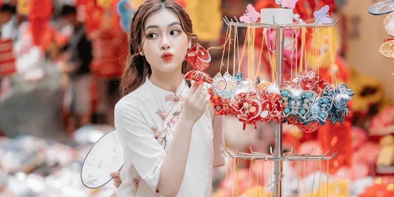 Trang phục áo dài cách tân màu sắc tươi sáng hoặc váy hiện đại sẽ giúp bạn nổi bật giữa không gian đầy màu sắc. Áo dài cách tân nên chọn chất liệu nhẹ như voan hoặc lụa, với họa tiết hoa nhí hoặc hình học để tạo sự hiện đại. Váy hiện đại có thể là kiểu xòe hoặc váy suông, màu sắc như đỏ, vàng, xanh dương sẽ nổi bật giữa đèn lồng.